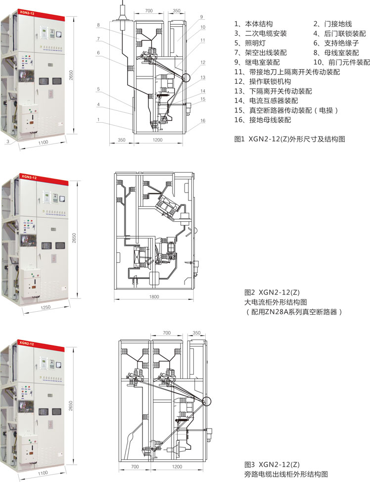 XGN2-12(Z)開關柜為金屬封閉箱式結構,柜體骨架由角鋼焊接而成,柜內分為斷路器室、母線室、電纜室、繼電器室等,室與室之間用鋼板隔開。